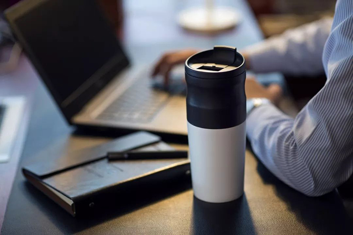 结合了保温杯 、手冲壶 、磨豆机和滤网的一体式冲煮设备。